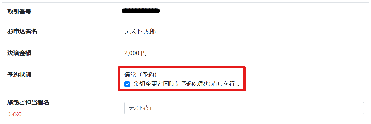 取引の予約状態が[通常(予約)]の場合は、決済金額変更と同時に予約の取消を行うことが可能です。
