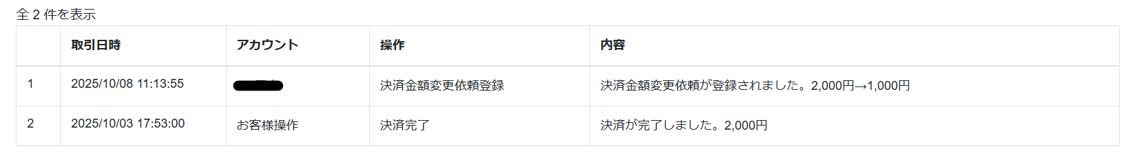 サポートセンターにて決済金額変更作業を行いますので、1~2営業日ほどお待ちください。