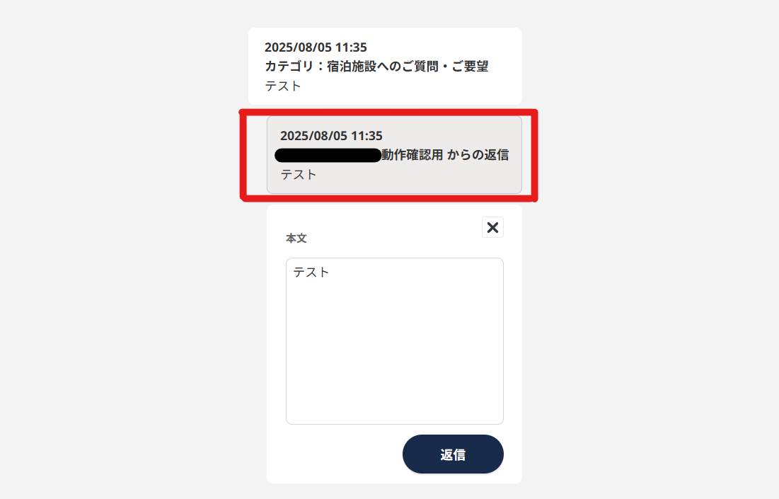 追加でご質問がある場合は、[返信]ボタンを押下のうえ[本文]に内容を記載し返信してください。