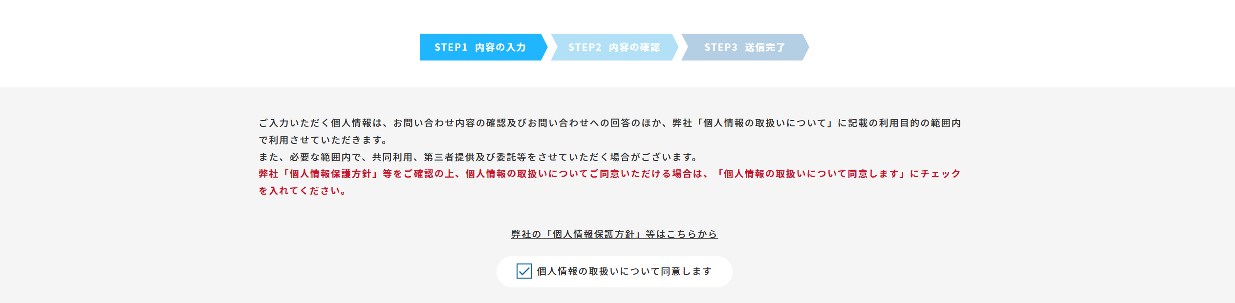 ⑴「個人情報の取扱いについて同意します」へ✓