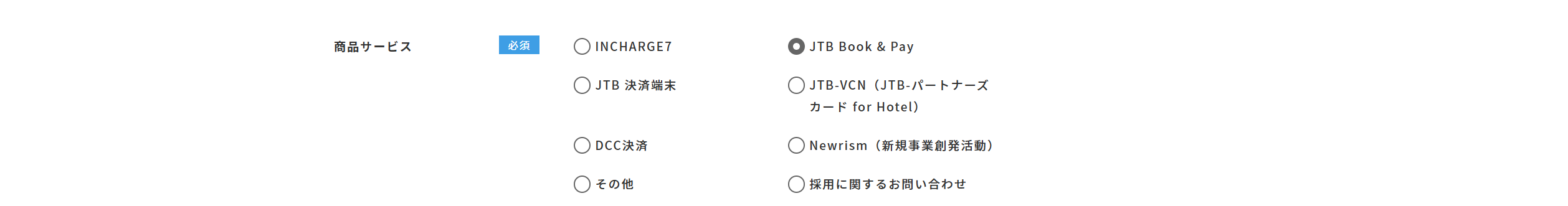 ⑵商品サービスにて[JTB Book&Pay]を選択