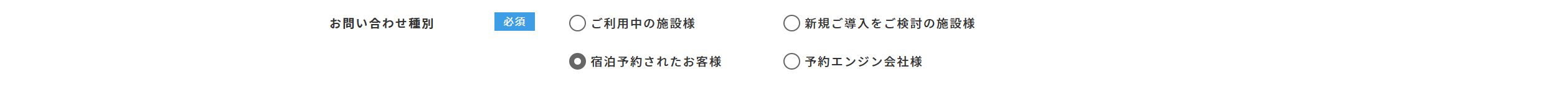⑶お問い合わせ種別にて[宿泊予約されたお客様]を選択