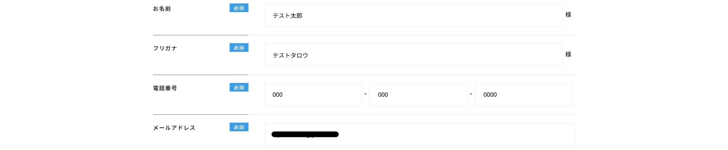 ⑸お名前以降の必要情報を入力