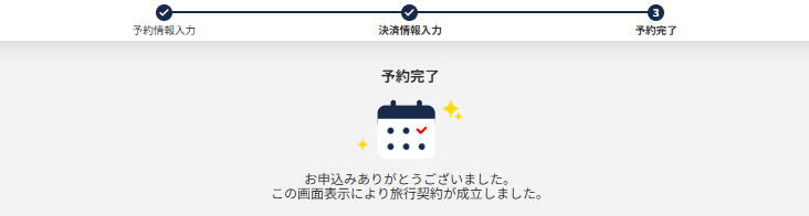 必ずJTB Book&Payの予約完了画面が表示されたことを確認してください。