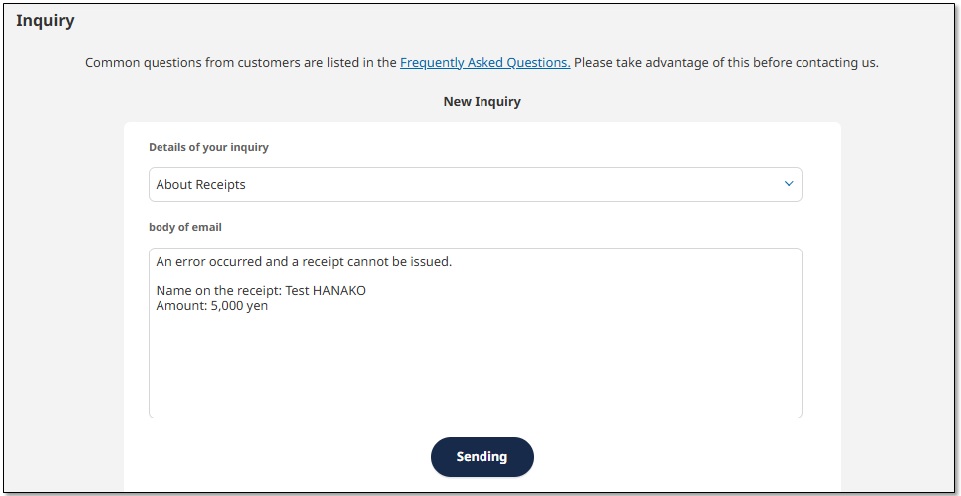 If the above does not resolve the issue, select "About Receipts" from the "Inquiries" menu and contact us,
