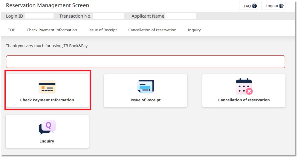 and check your reservation details by 「Check Payment Information 」.