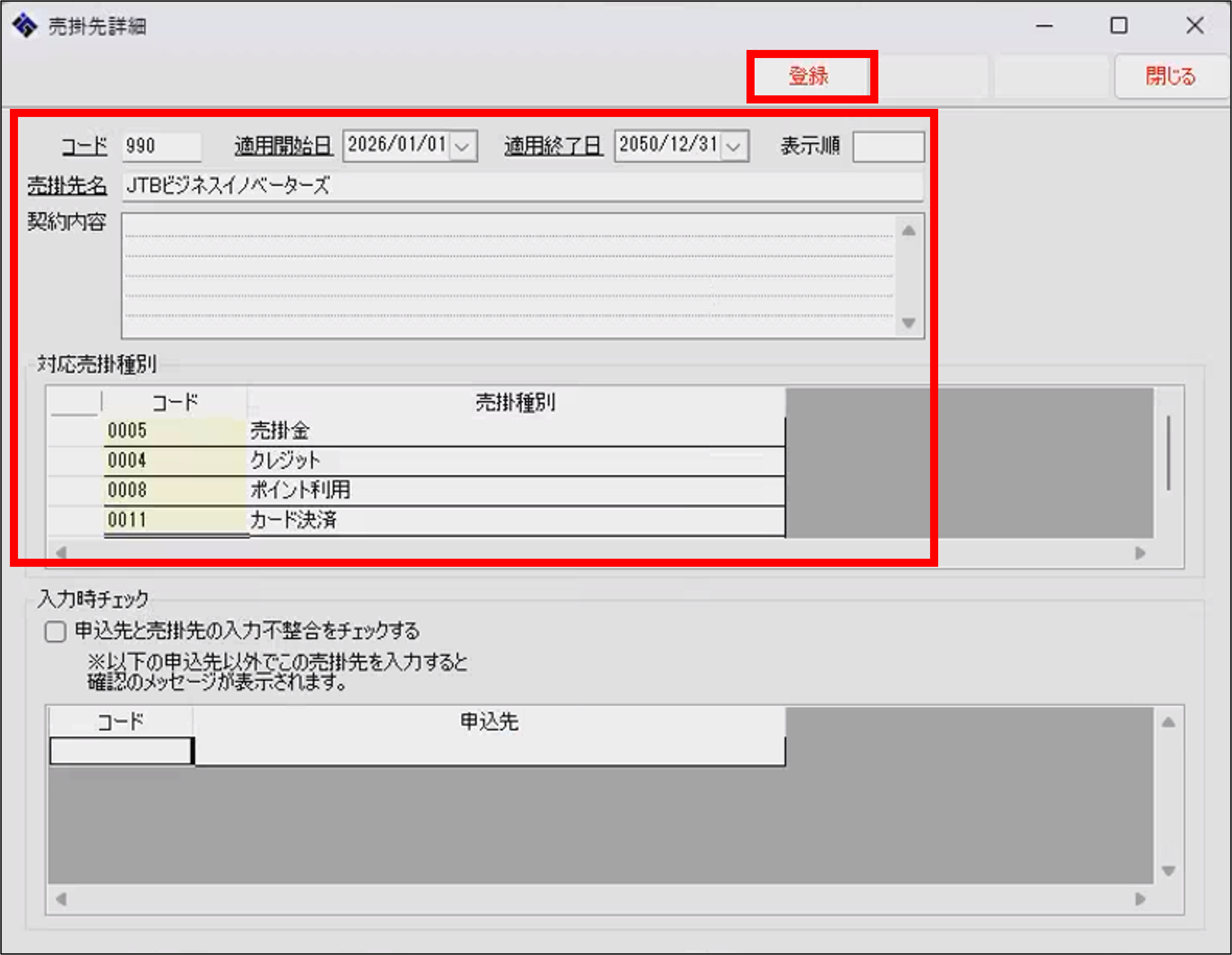 各項目に適切な内容をご入力いただき、「登録」ボタンをクリックします。