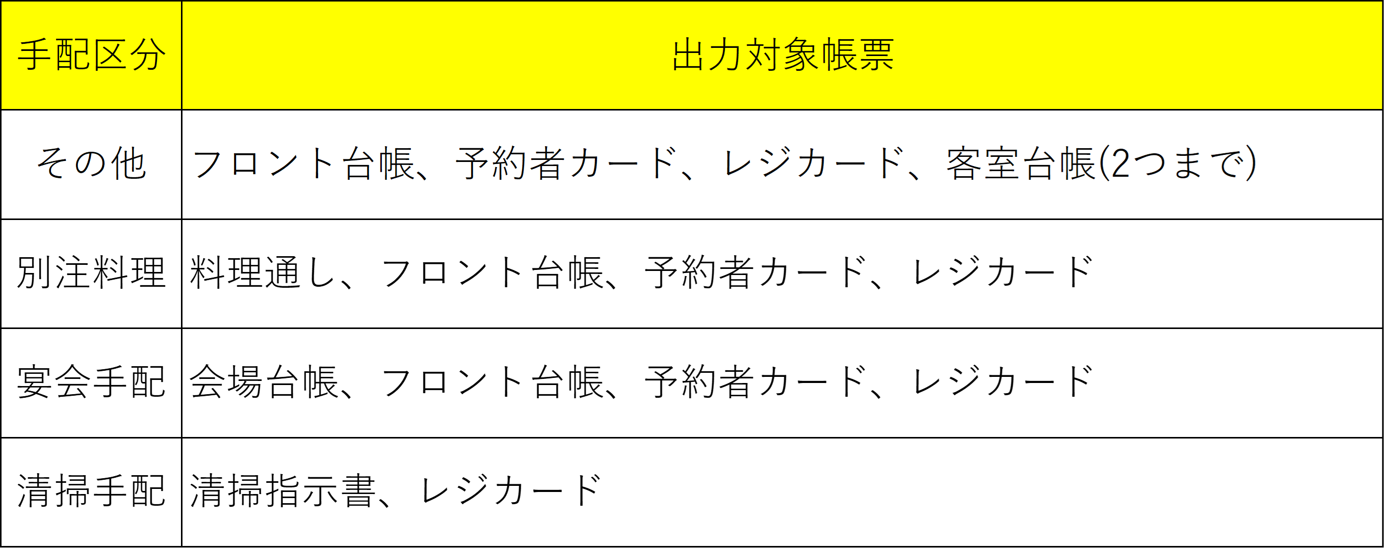 また、手配区分と出力対象帳票の関係性は下記の通りです。