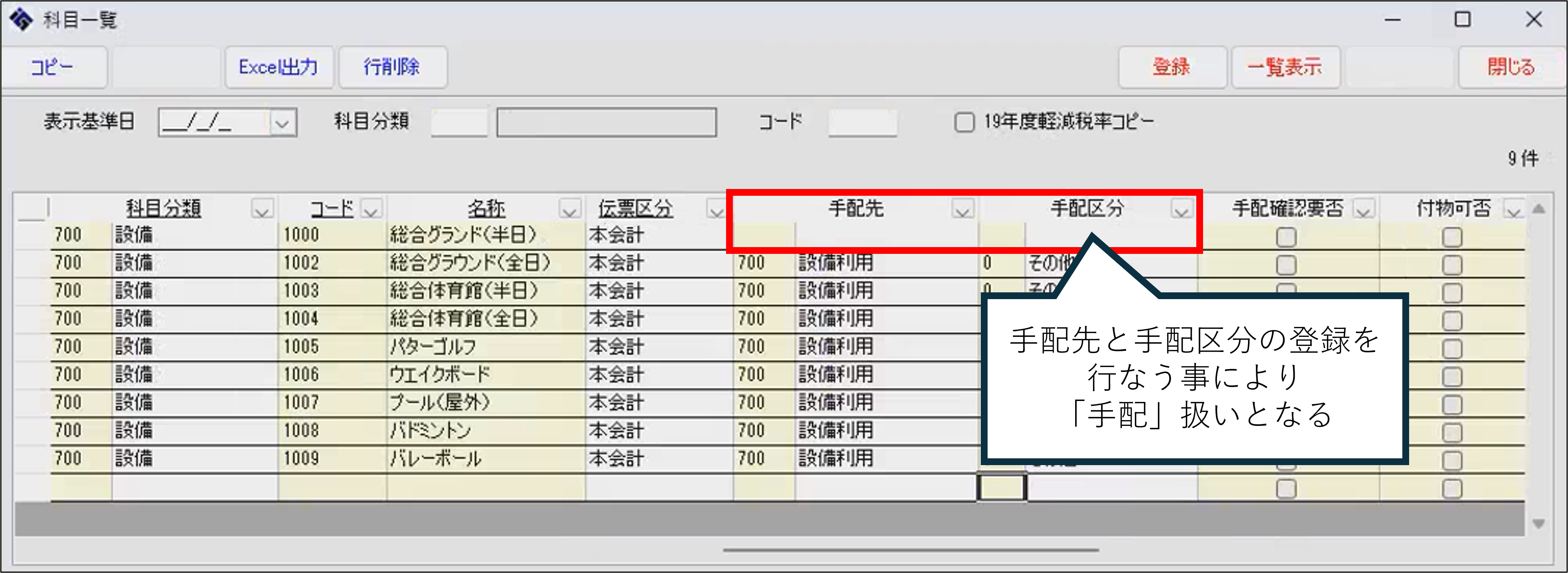 なお、事前に対象科目に対して「科目一覧」の「手配」登録設定が必要となります。