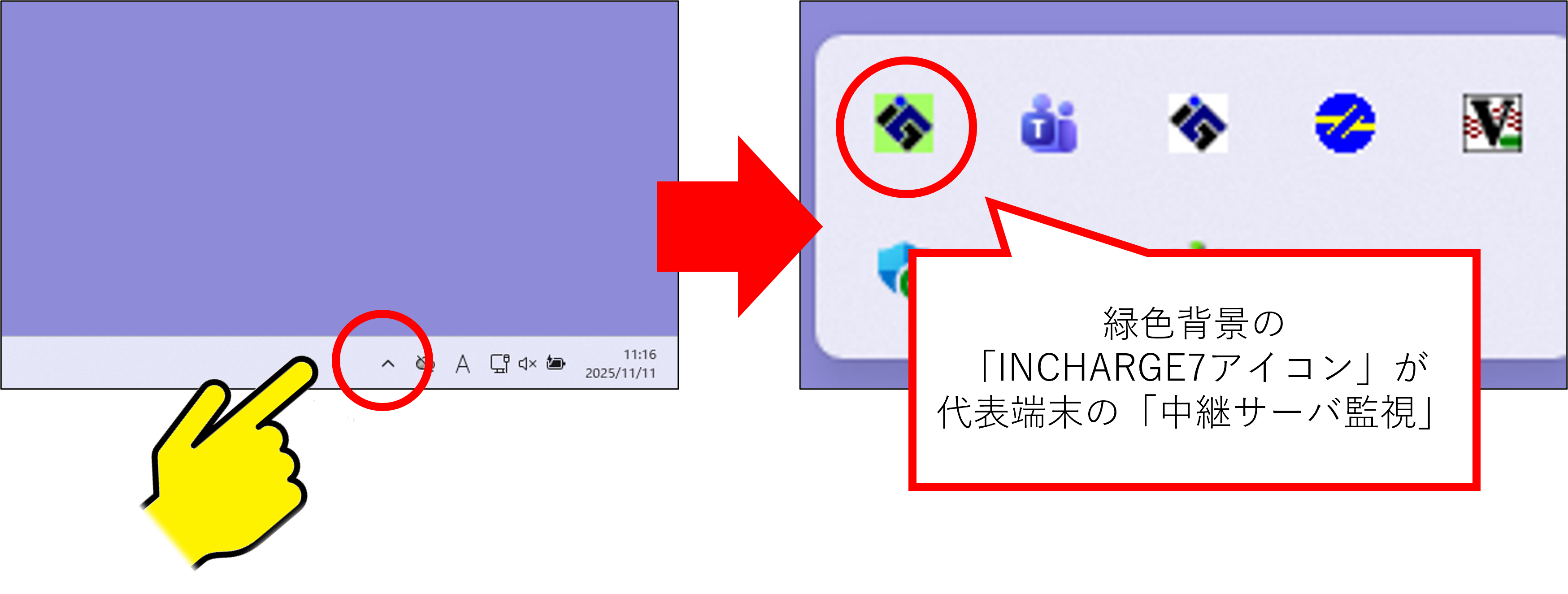 2.緑色背景のINCHARGE7アイコンが「INCHARGE7中継サーバ監視」プログラムです。