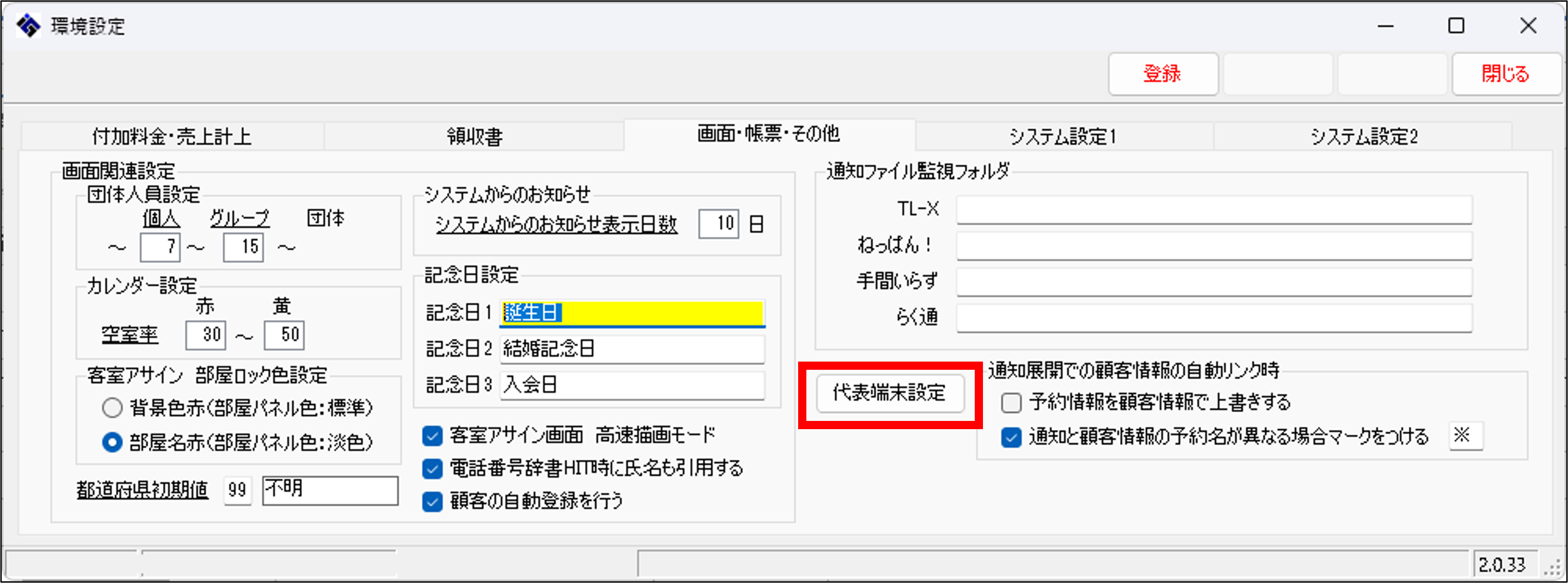 3.「代表端末設定」ボタンをクリックします。