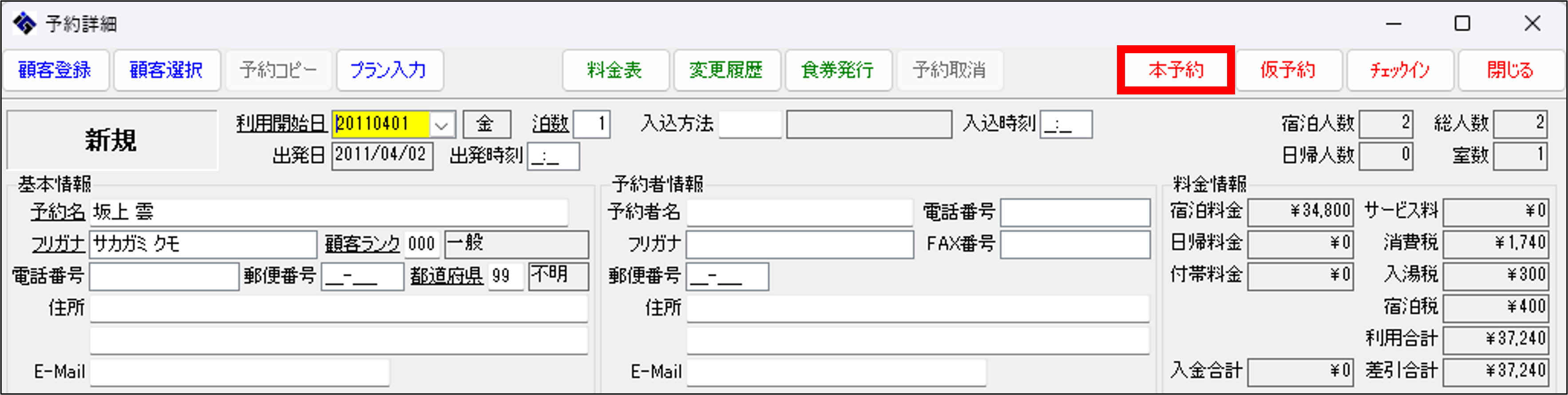 3.予約詳細画面で内容確認し、問題がなければ「本予約」ボタンをクリックします。