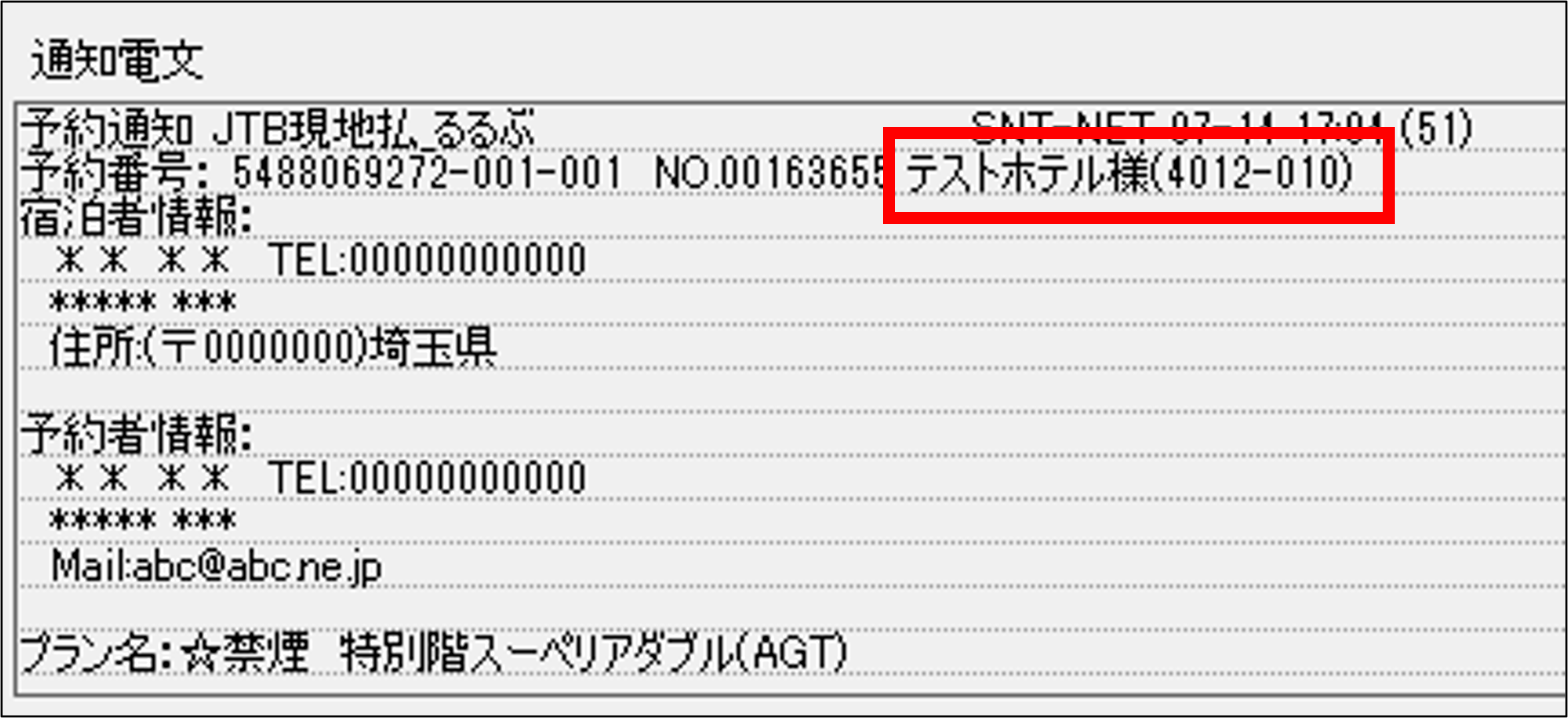 1.通知電文から地区宿コードを確認します。