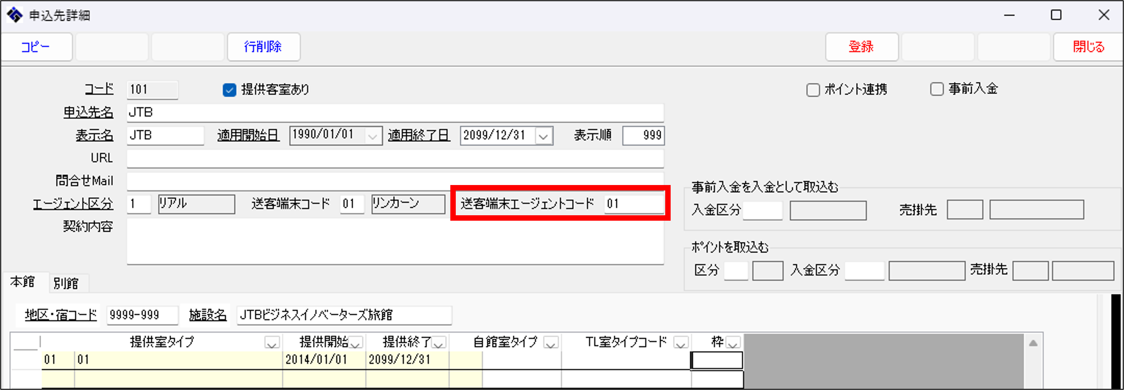 2.TL-リンカーン側の提供室タイプエージェントコードを確認します。
