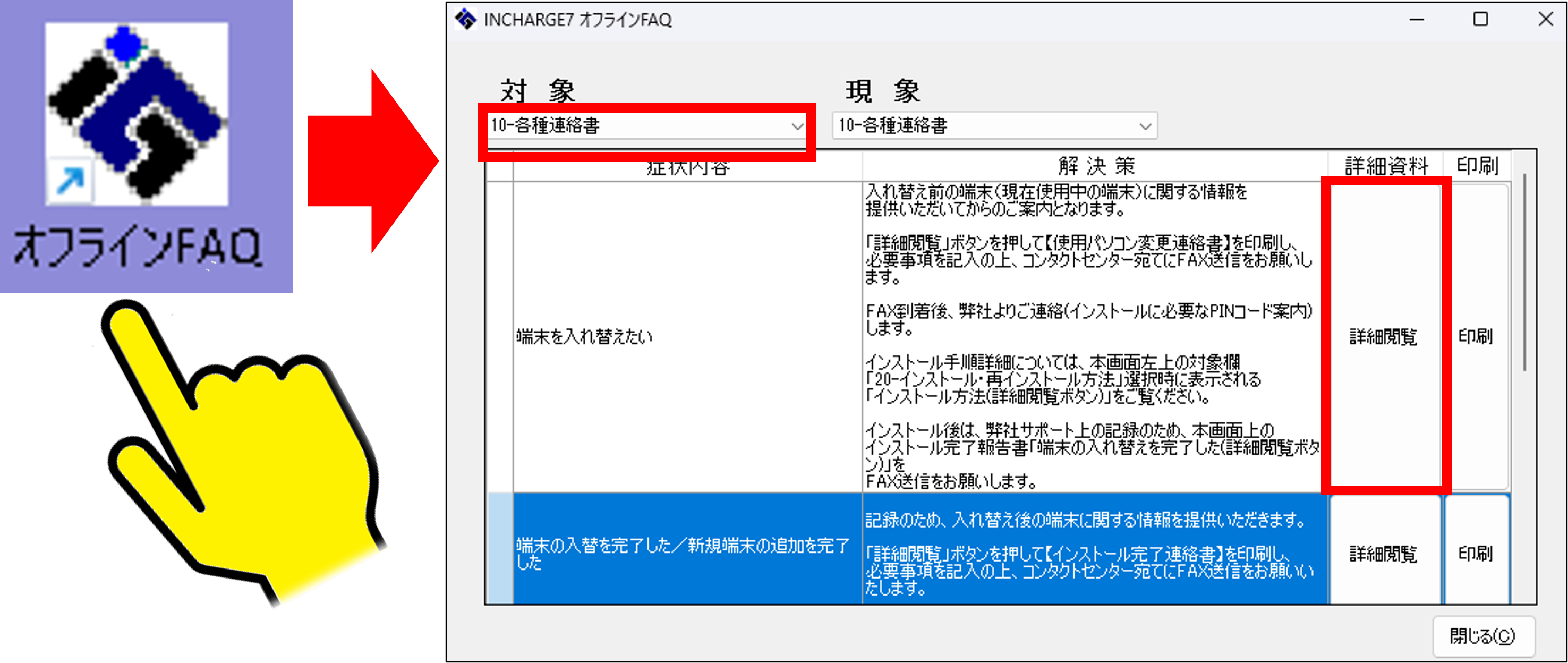 8.INCHARGE7インストール完了後は、入替先(新しくインストールした)PCでオフラインFAQを起動します。