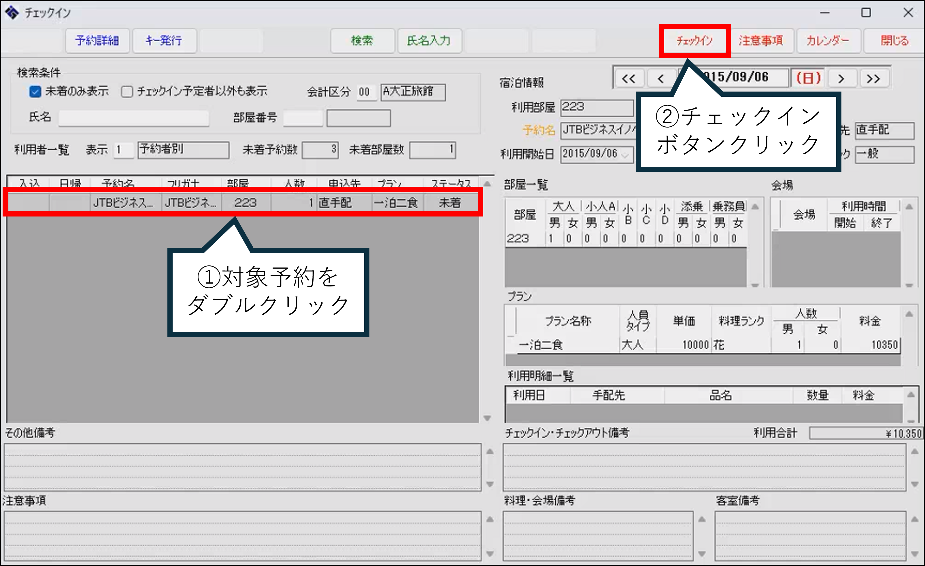 左側の予約一覧から対象予約をダブルクリックします。