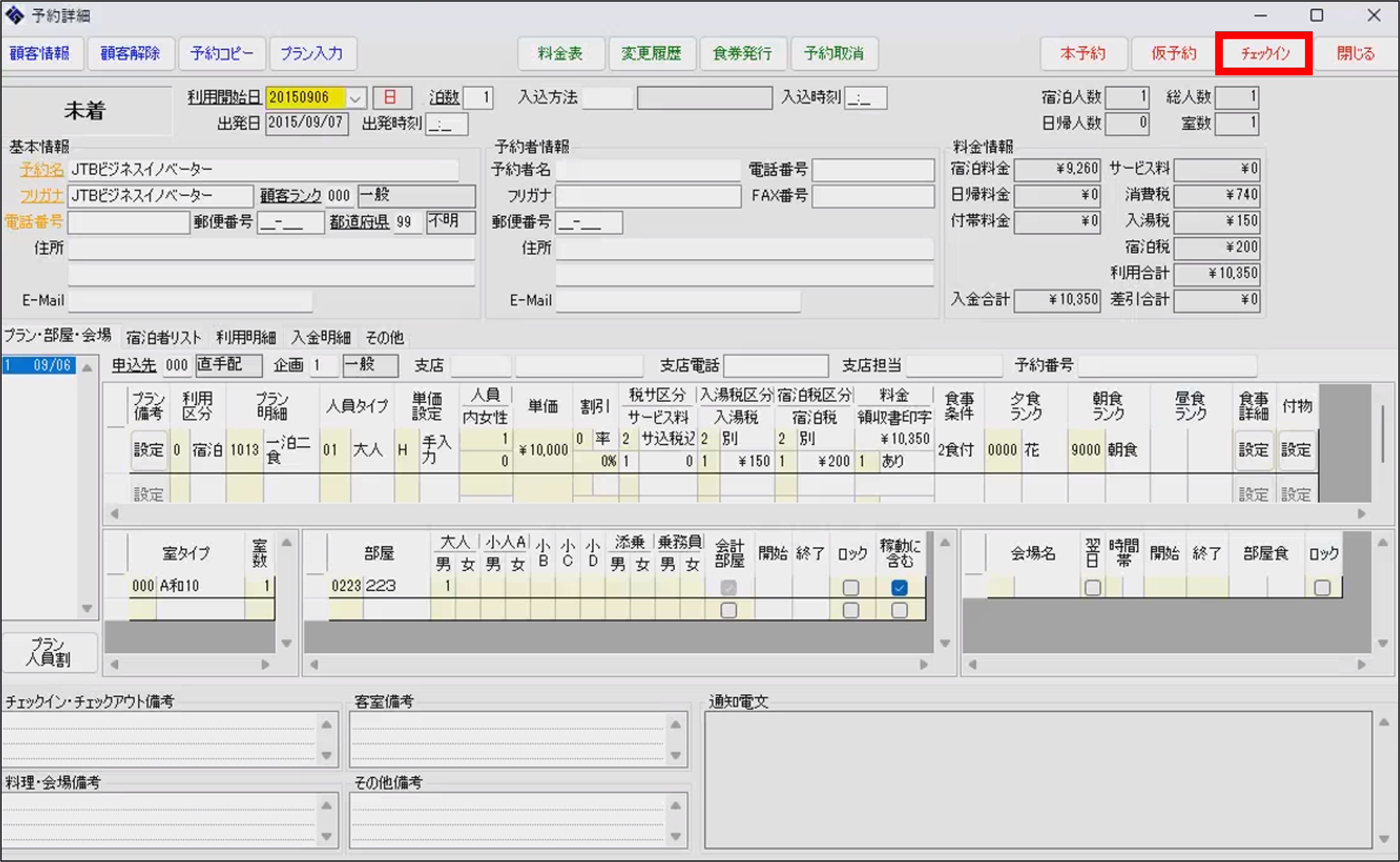 客室アサイン画面で予約のステータスが「IN済」に変わります。