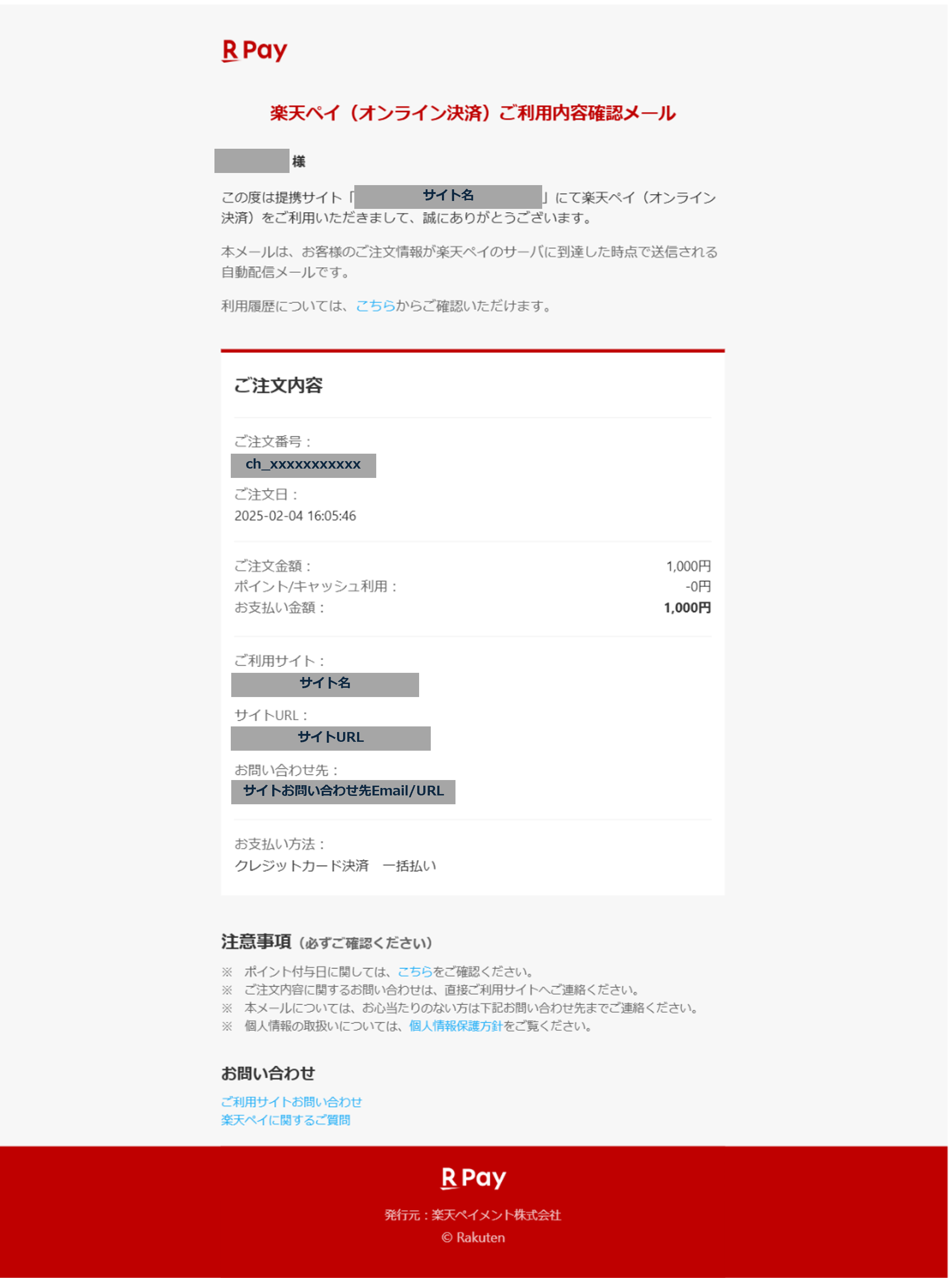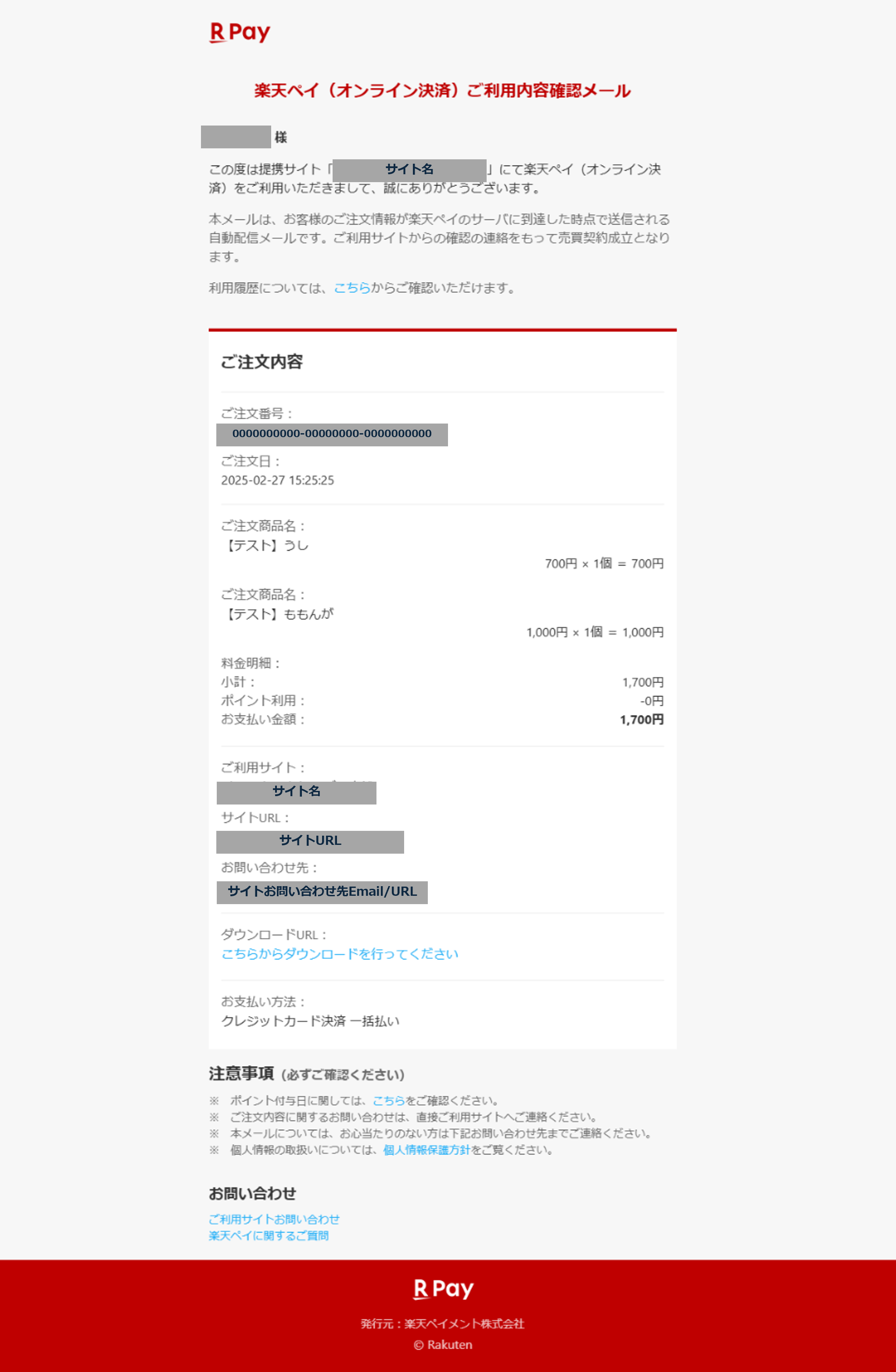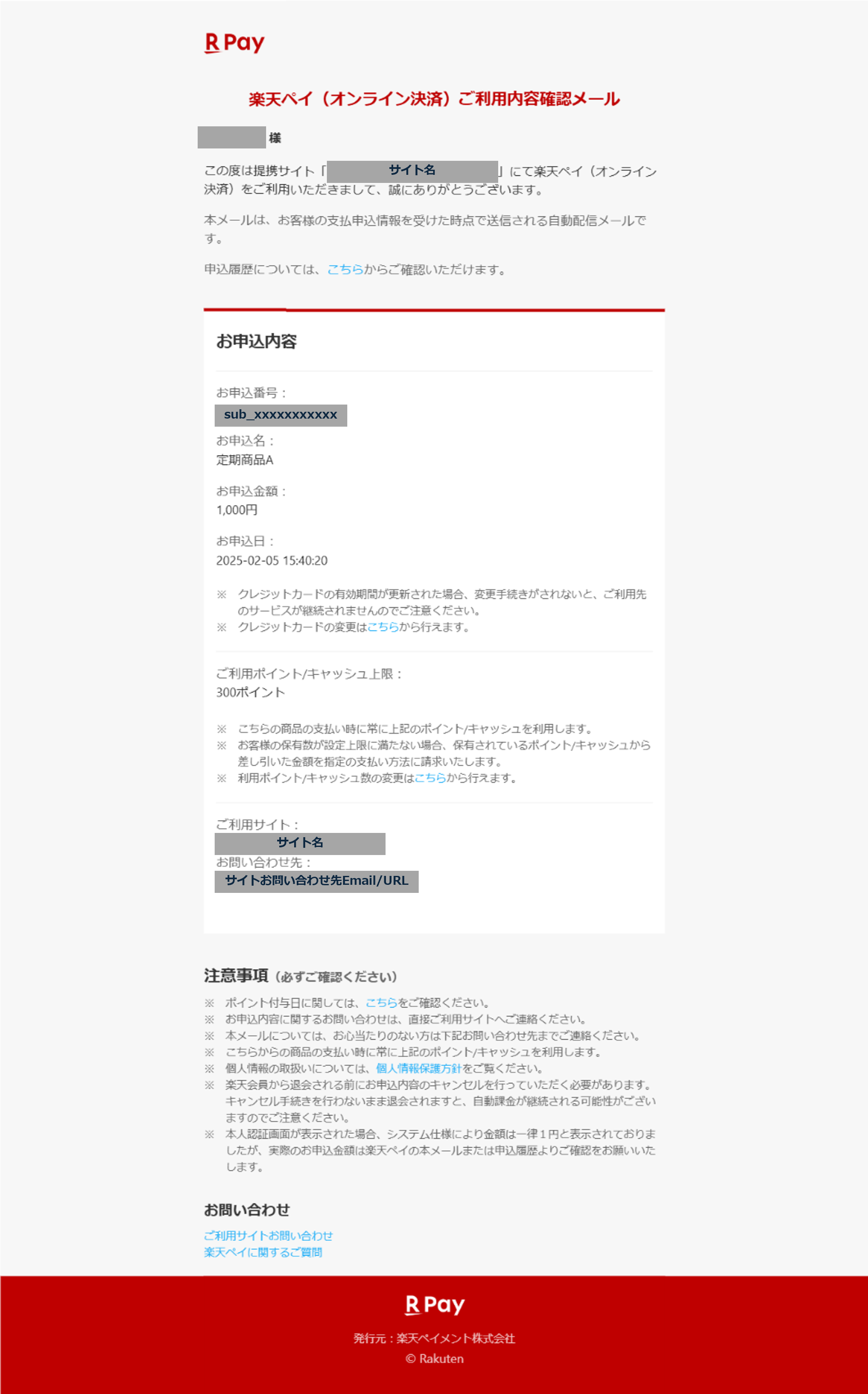 【V1】【V2】楽天ペイ(オンライン決済)からエンドユーザ様へ自動配信しているメールを知りたい。