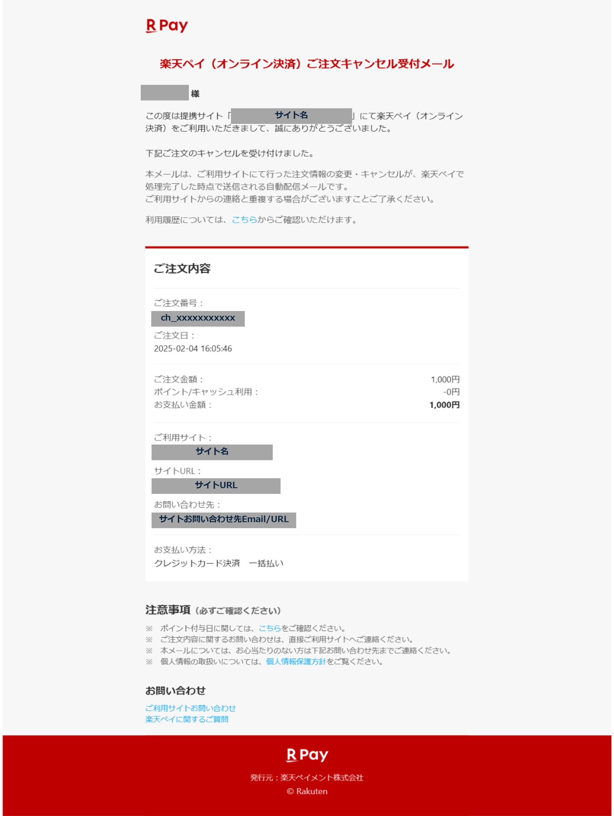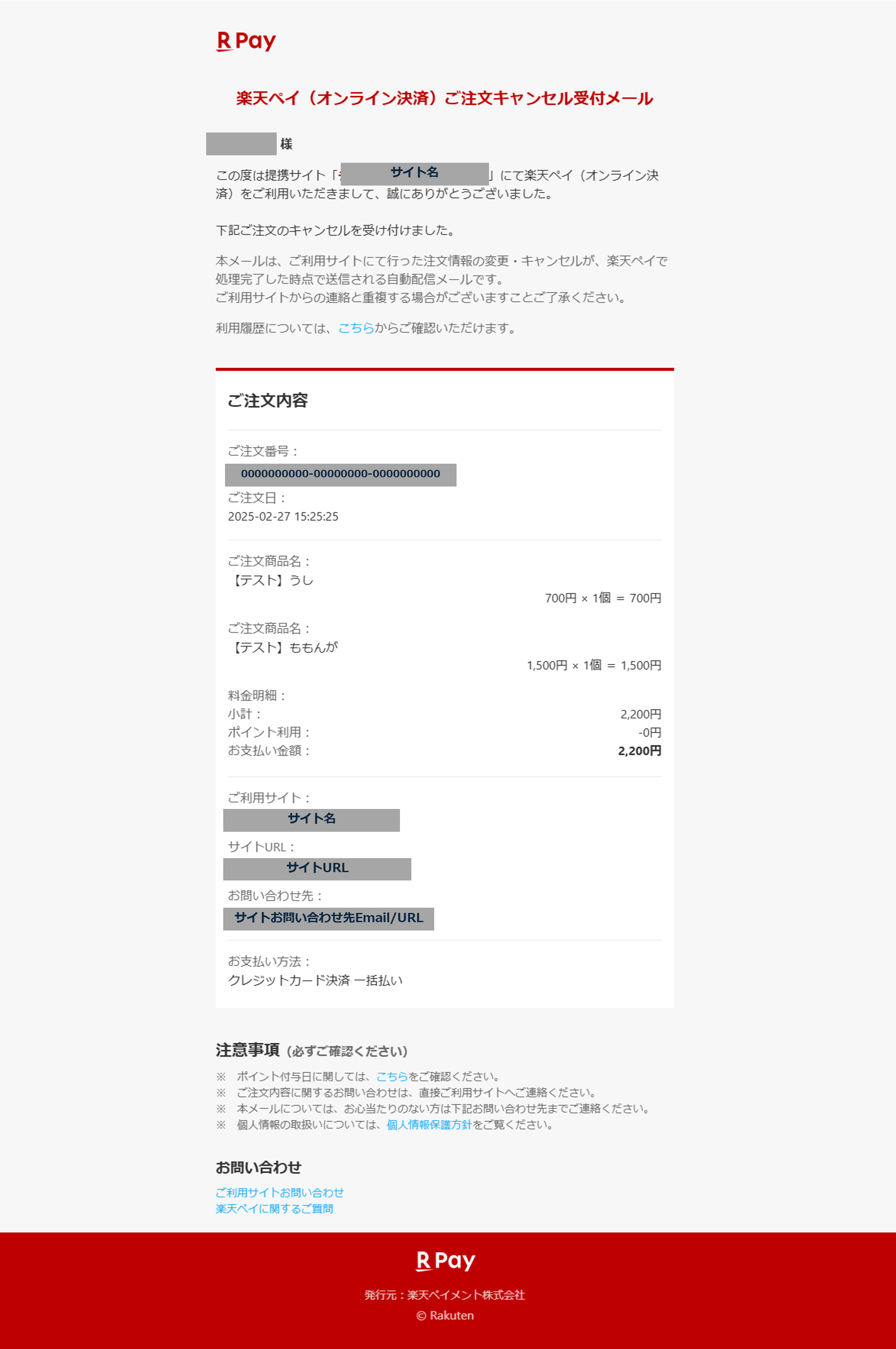 #3 楽天ペイ 注文キャンセル受付(自動配信メール)