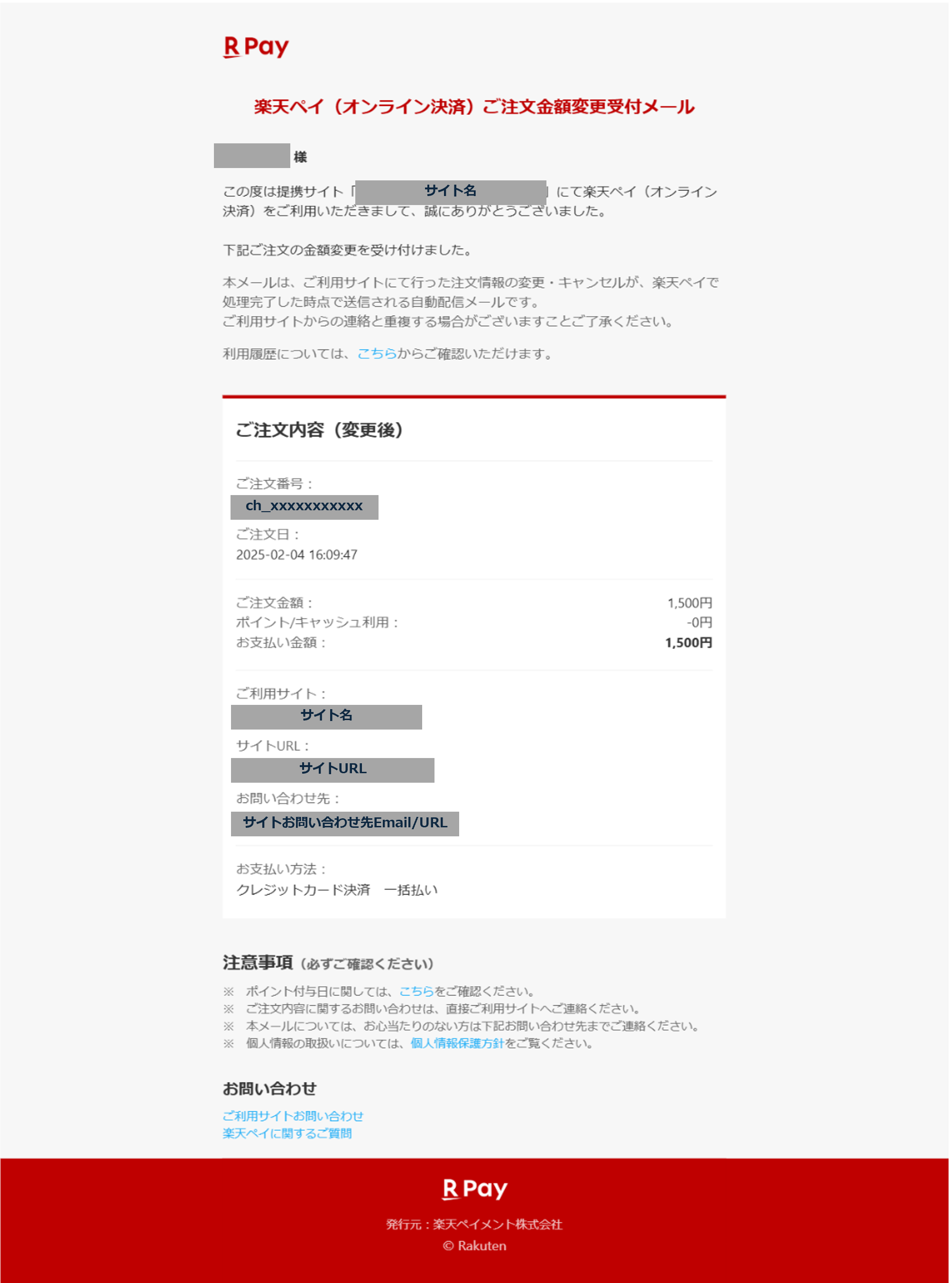 #4 楽天ペイ 金額変更受付(自動配信メール)